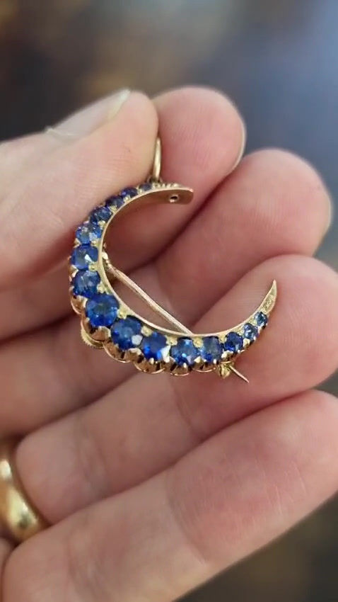 Antique Victorian No Heat Natural Sapphire Crescent Moon Pendant Brooch