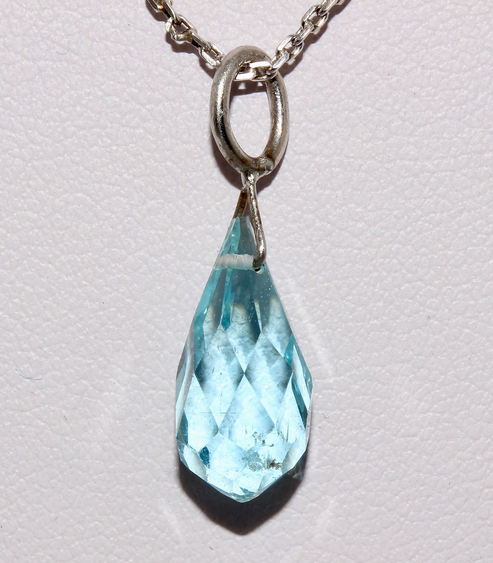 Art Deco Platinum Aquamarine Briolette Pendant Charm Dangler