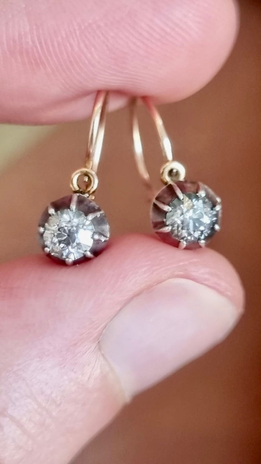 Antique Georgian French 18K Gold Silver Paste Dormeuse Earrings